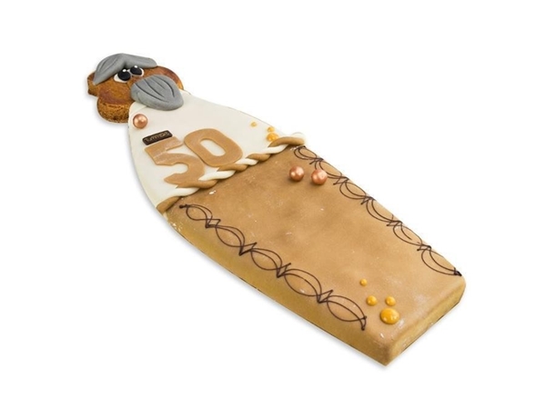 Walnootslof, geglazuurd en gedecoreerd naar een Abraham- of Sarah-figuur